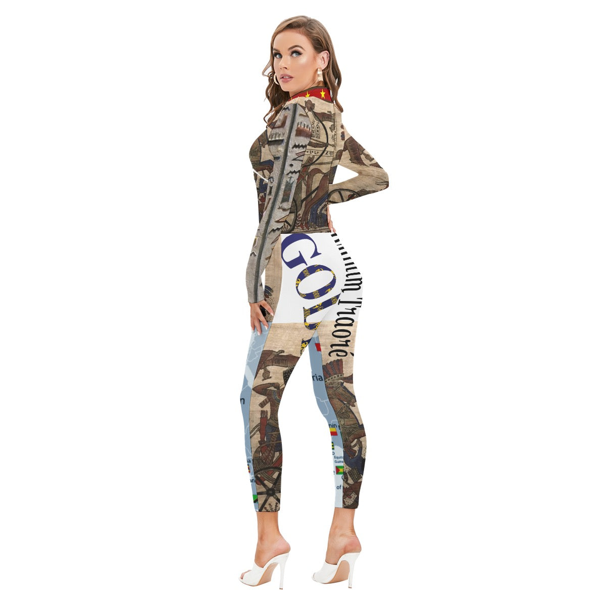 All-Over Print Women's Long-sleeved High-neck Jumpsuit With Zipper