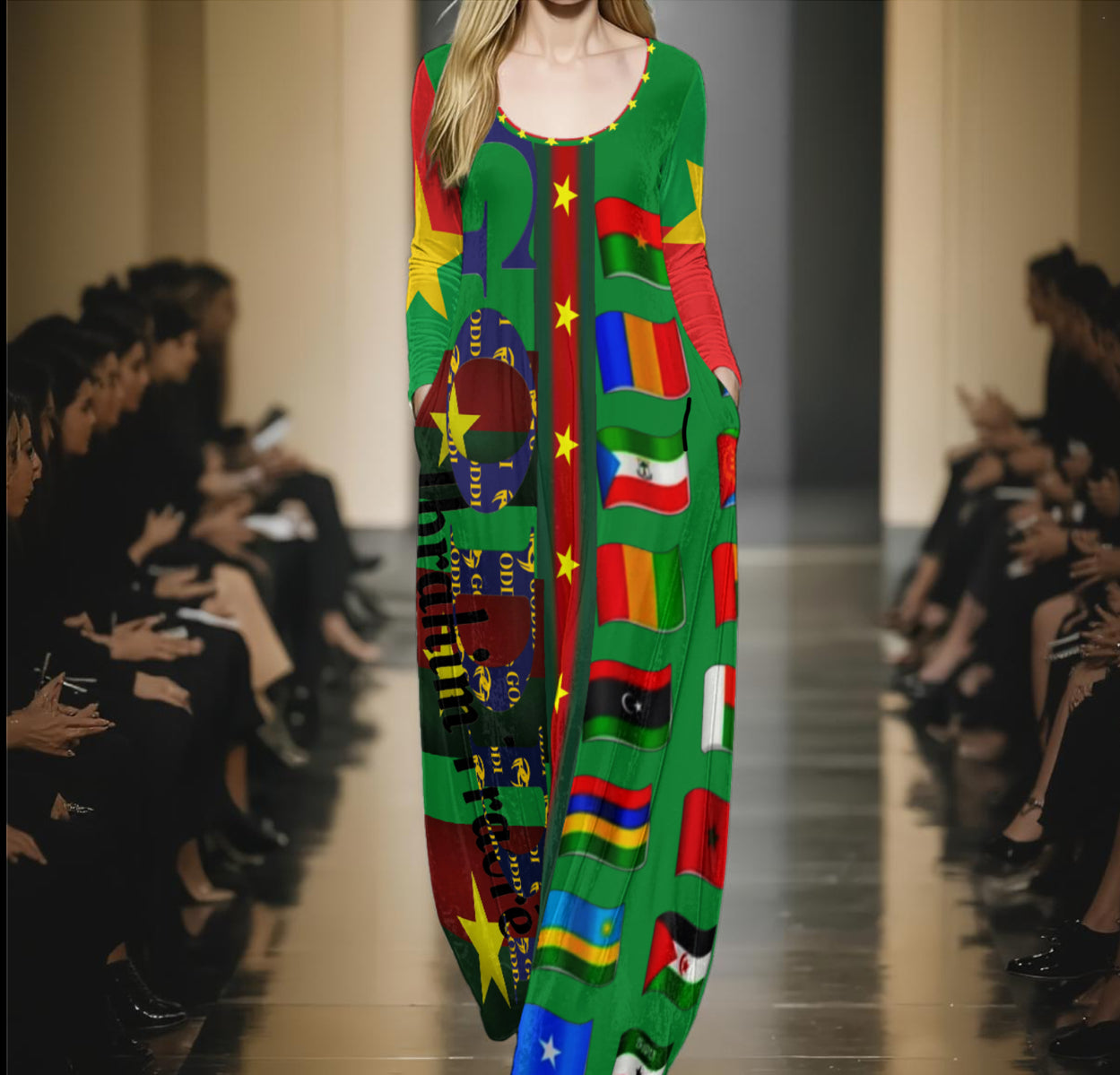 This maxi dress speaks to your mood and soul—its colors shifting to inspire confidence, royalty, and hope. Whether styled as luxe loungewear or street-smart chic with boots, sneakers, or sandals, it’s a powerful declaration of our collective strength. We are walking through a revolution—united, proud, and unstoppable. The future is ours. Let’s go—together.